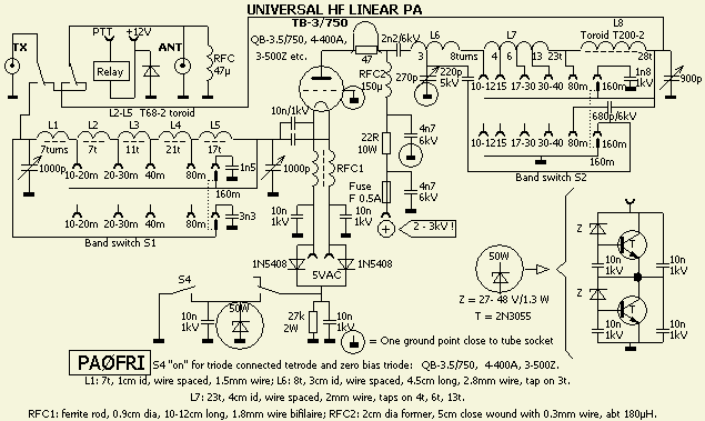 Tetrodes e.g. QB3.5/750, QB4/1100 and RS676 requires about 85 W of drive for 400 W output. I am not enthusiastic about the 4-125A, 4-250A and 4-400A, with the gain on 10–20 metres falling below the European tetrodes. In general I do not recommend using American tetrodes.