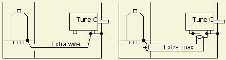 If you want to add or optimise a fixed input circuits for each band, it is best to use the C-values giving in the table. Starting with the fixed input value, experiment with Lx and Cx to get the lowest SWR. Replacing Cx with a piece of coax cable terminated with a variable capacitor (Ct) makes for and easy to reach adjustment. Be aware that the cable capacitance has to be added to the found optimum value of the trimmer at the end of the cable. This then becomes the value of the fixed capacitor, so Cx = Ct + Ccable. Finally eventually adjust C for improved SWR.