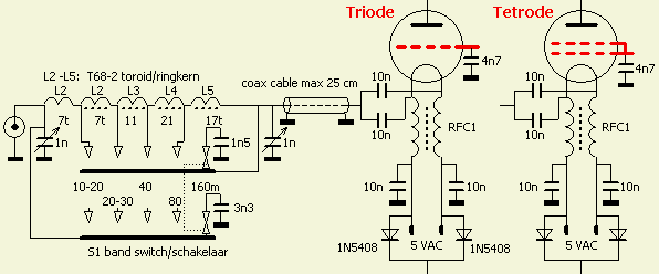 In fact the tube is placed in a screened box that detours the current from the stator plates to the tube socket. An extra short thick wire shortens the path, improves overall stability and efficiency on the higher frequencies.