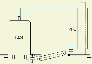 De anodesmoorspoel RFC2 is met 4.7 nF ontkoppeld naar aarde, maar een nog betere ontkoppeling kan via een stuk coaxkabel, RG52 voor 2000 V en RG213 voor 5000 V, naar het aardpunt van het rooster. De binnenader en de afscherming staan parallel aan 4.7 nF. Zo wordt als het ware de ontkoppelcondensator via de kabelcapaciteit verlegd naar het aardpunt van de buis. De afscherming van het stukje coaxkabel is aan beide uiteinden zo dicht mogelijk bij de smoorspoel en het rooster geaard.