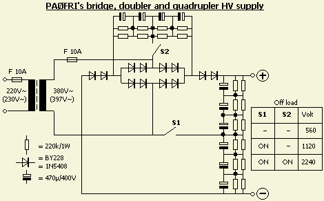 Tegenwoordig zitten in de meeste lineaire versterkers HV voedingen met een schakeling door spanningsverdubbeling.