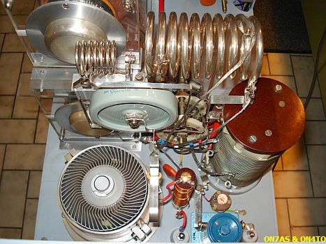 Deze versterker een AEA LA30 laat mijn idee in de praktijk zien. Het frame van de tuning condensator is mechanisch met het compartiment van de buisvoet verbonden maar HF stromen kunnen moeilijk naar "binnen" om het geaarde rooster te bereiken. Na een eenvoudige ingreep met een geïsoleerde draad door een gat in de bodemplaat, was de versterker stabieler en leverde ongeveer 20 % meer output op de 10 m band.