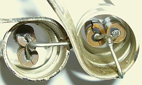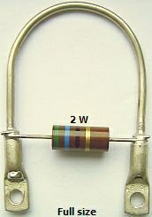 Bij sommige versterkers moest de haarpin vergroot worden om de buis of buizen stabiel te houden. In een TL-922A werd door mij blank vertind 6 mm² installatie draad (eventueel 2 mm diameter) gebruikt dat in deze toepassing de buizen net zo stevig op hun plaats houdt als de originele stoppers. U knipt een stuk van 12 cm en buigt dat om een pijp van 2.5 cm doorsnede en soldeer aan beide uiteinden een kabelschoen of soldeerlip. Er over nadenkend zou het mij niet verbazen dat door de montage van de weerstanden naast elkaar, de stoppers op twee brede frequentiebanden effectief zijn.