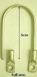 Als u onverhoopt parasietstoppers moet vervangen monteer dan het haarpin model volgens de foto. Na veel experimenteren en bouwen van HF versterkers is hier een "standaard" model ontstaan waarbij de lengte van de draad 10 cm is en de breedte van de haarpin 2.5 - 4 cm. Knip echter een stuk af van 12 cm en gebruik de extra lengte om de draad over de uiteinden van de weerstand te wikkelen en vast te solderen. Volgens AG6K moeten zij gemaakt worden van een speciale dure metaalsoort (NiCr), maar dat is niet nodig. Als u vertind draad gebruikt, heeft het oppervlakte een voldoende "skin" weerstand voor VHF dunkt mij.