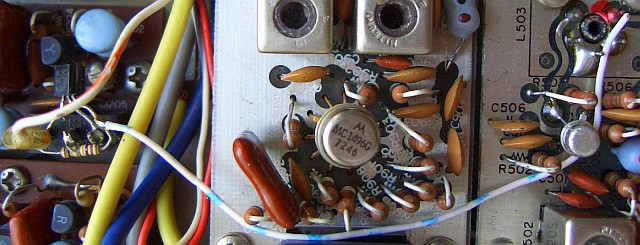 De instelling van de mixer Q502 (3SK40) bleek te verbeteren als de source weerstand R510 («fig) vergroot werd van 680 Ohm naar 1.5 kOhm. Dezelfde instelling was ook optimaal als deze FET vervangen werd door een BF981 met het voordeel dat de mengversterking toenam. Als u dat laatste niet nodig vindt laat dan de 3SK40 op zijn plaats zitten. Ook hier is het resultaat optimaal als L507 en L508 nageregeld worden. Het mooiste is als u de mogelijkheid heeft om de helical filters L503, L504 en L507 met behulp van een spectrummonitor of spectrumanalysator af te regelen. Mijn HP analyzer gaat maar tot 110 MHz en daarom werd de klus geklaard met mijn zelfgebouwde spectrummonitor (ontwerp PEØSSB) en ruisgenerator.