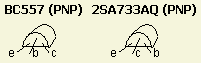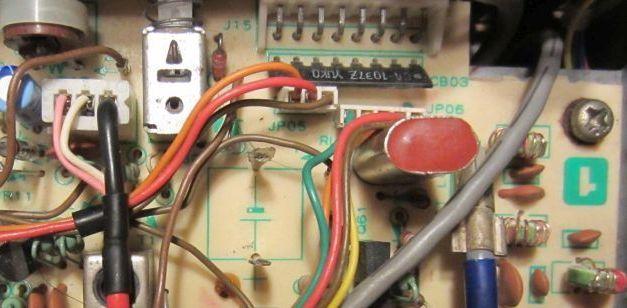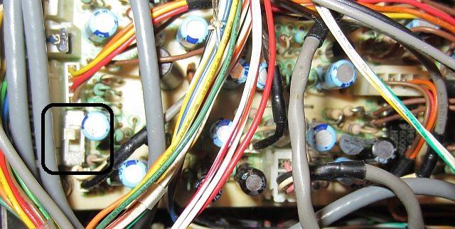 Van PNP transistor Q03 (2SA733AQ) linksboven was een poot afgebroken, zodat reparatie vrijwel onmogelijk was. Een BC557 bleek een goede vervanger te zijn. De aansluitingen zijn anders dan van de originele transistor!