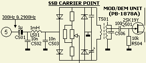 Met een meetpen («fig) kan het signaal van een toongenerator aan C501 (1 µF) van de MOD/DEM UNIT (PB-1878A) gekoppeld worden.