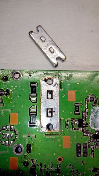 With the cooling block removed, you can easily remove the FETs with your soldering iron trough the bottom hole. Once removed, the PCB is cleaned with some solder-wick, to leave a clean board afterwards. Note that I also removed the 2 220 ohm resistors in between the 2 FETs. I did this for easier access to clean the PCB, and because the new BIAS circuit for the RD07MVS1 didn’t require them.