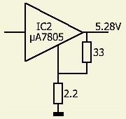 Contrary to the diagram, two resistors have been mounted on the PCB of the power supply to increase the 4.95 V stabilized voltage of IC2 (µA7805) to 5.28 V. The print traces were factory made for that change. Why that was done by the manufacturer remains a question because it was not present with the SE400's of some other owners.