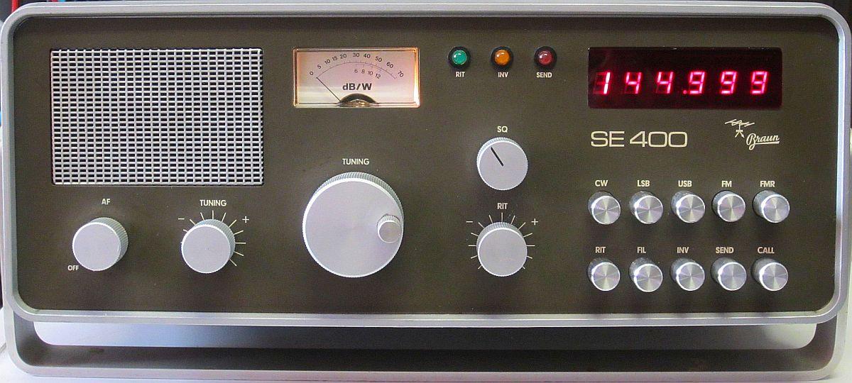 A few years ago I acquired a Braun SE400 2 m transceiver from an estate. Devices of the deceased had been selected and the rest would be disposed of. Before doing the latter, I was asked if there was anything else for me. Obviously, the Braun caught the eye and was saved from destruction. At the time (1975) an SE400 was a flagship among all other 2m sets and cost about DM 2500, while a middle class car was DM 5000. Probably there weren't many radio amateurs who could or were willing to spend that amount for a handmade transceiver!